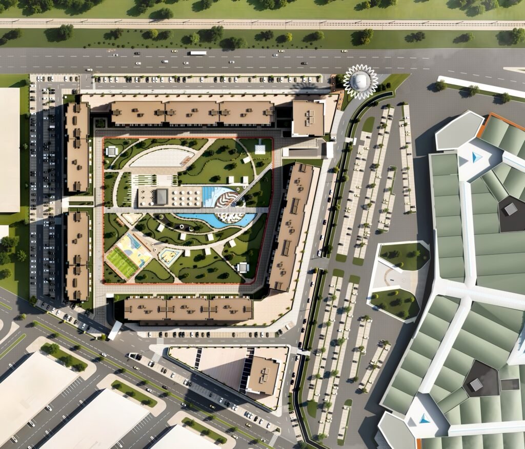 Bu karma yaşam projesi; ticaret, ofis, eğitim, spor ve kültür işlevlerini bütüncül bir yaklaşımla bir araya getirirken, doğaya odaklanan sosyal alanlar ve geniş açık yaşam alanlarıyla çevre ve kent dokusu arasında güçlü bir bağ kurar.